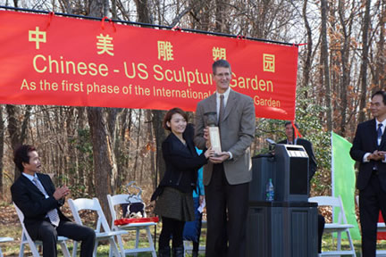 堪城公共電視執(zhí)行制片人Nick Hanines主持了儀式,市長(zhǎng)Carl Gerlach代表市政府和全市人民致辭歡迎來(lái)自遠(yuǎn)方的藝術(shù)家們,感激這些作品讓城市更有魅力,豐富了這里人們的文化生活。市園林局主任介紹了未來(lái)的國(guó)際雕塑公園的前景規(guī)劃并感謝國(guó)際雕塑公園基金會(huì)所有成員的共同努力。廣州雕塑院院長(zhǎng)許鴻飛代表藝術(shù)家們發(fā)言:非常有幸能為中美文化交流作出自己貢獻(xiàn),讓這些在中國(guó)享有盛名的作品在美國(guó)有了新的家是我們的自豪。
