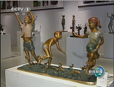 (圖為中央電視臺新聞聯播截圖) 李長春同志一行在宇達青銅文化產業(yè)園內的美國著名雕塑家吳信坤雕塑藝術館參觀