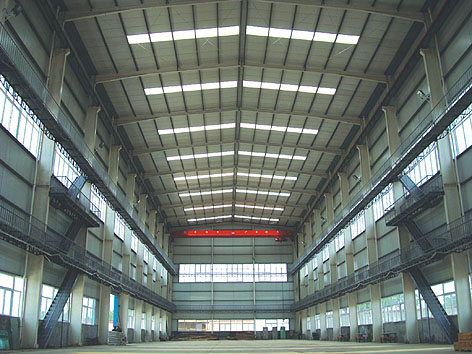 宇達大型雕塑工房地處宇達青銅文化產(chǎn)業(yè)園新區(qū)內(nèi),為鋼結(jié)構(gòu)工房。工房處于果園之內(nèi),風(fēng)景怡人。工房長120米,寬22米,高21米,建筑面積2640平方米,裝備有10噸、5噸、3噸三臺行車供吊大泥和翻模卸塊使用。四周分別在高5米和10米處分布上下兩層專門觀測雕塑泥稿的走廊。除兩層透明窗戶外,專門應(yīng)雕塑家要求在工房頂部設(shè)立了透明采光帶,有效地解決了頂部光線問題。工房內(nèi)設(shè)置最先進的燈光設(shè)備,晚上工作如同白天,絲毫不受影響,另外,室外還配有五星級洗手間。